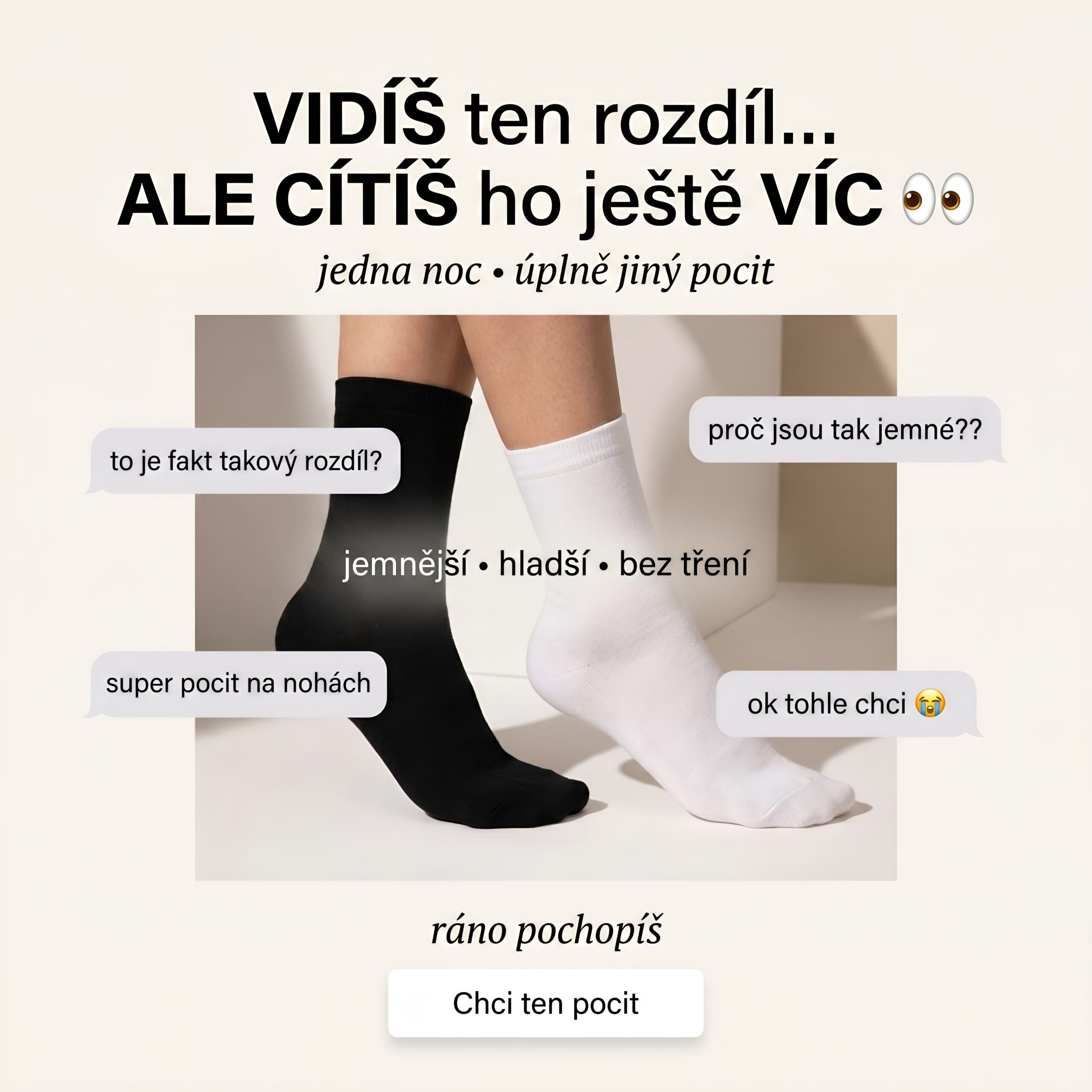 Materiál je stejný, mění se jen kontext použití. Na den oceníte prodyšnost, odvod vlhkosti a tenký profil do obuvi. Na noc pomohou se stabilní teplotou chodidel a podpoří pocit pohodlí při regeneraci. V obou případech se jedná o jemný, komfortní a nadčasový doplněk.