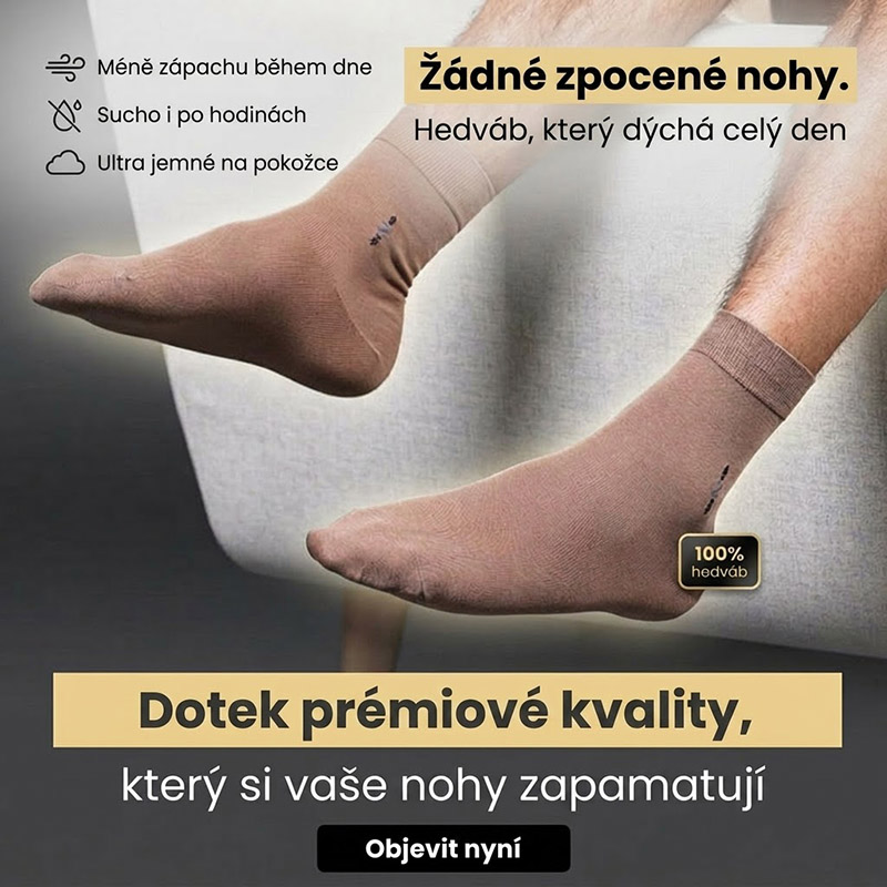 Hedvábí je přirozeně termoregulační a hypoalergenní – odvádí vlhkost, udržuje nohy suché a poskytuje pocit luxusu během celého dne. Ideální pro každodenní nošení, relax i spánek – pro ženy i muže, kteří si potrpí na kvalitu.