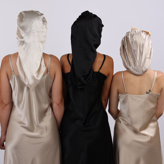 | Materiál | Hedvábný turban SIMIsilk | Bavlněná čepice | Umělý satén (polyester) |