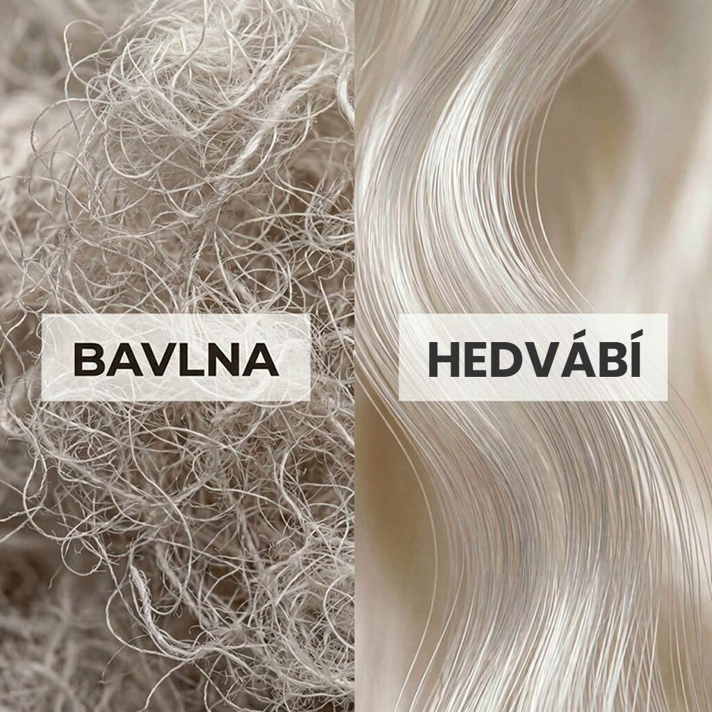 Bavlna patří mezi nejrozšířenější přírodní materiály, ale v porovnání s morušovým hedvábím má svá omezení. Bavlna sice dobře saje vlhkost, ale zároveň může vysušovat kůži a vlasy. Hedvábí má opačný efekt – pomáhá udržovat přirozenou hydrataci a díky své hladké struktuře snižuje tření.