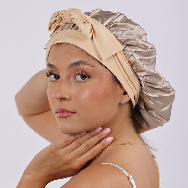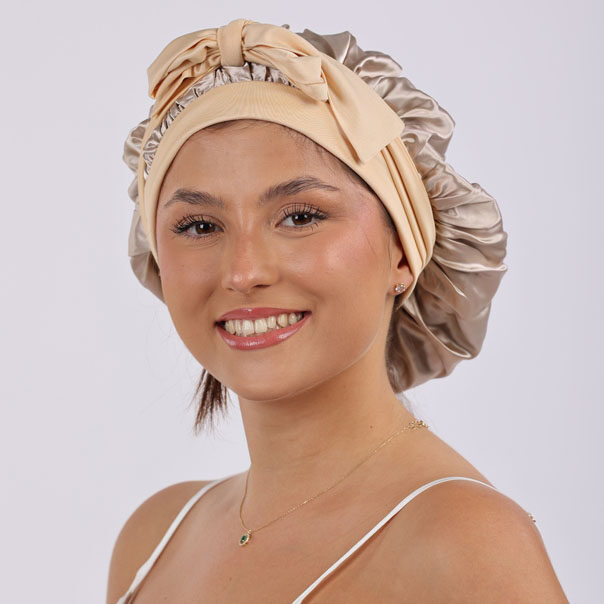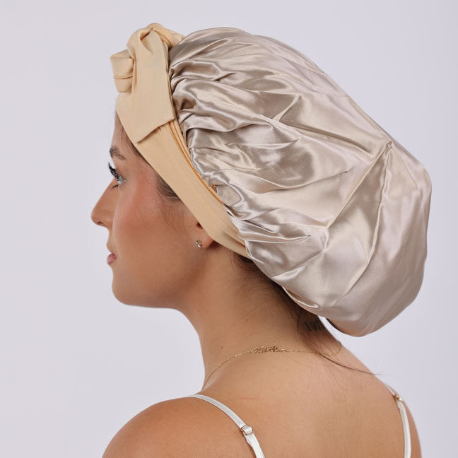 Daphne hedvábný bonnet pro dlouhé vlasy – Zlatý champagne