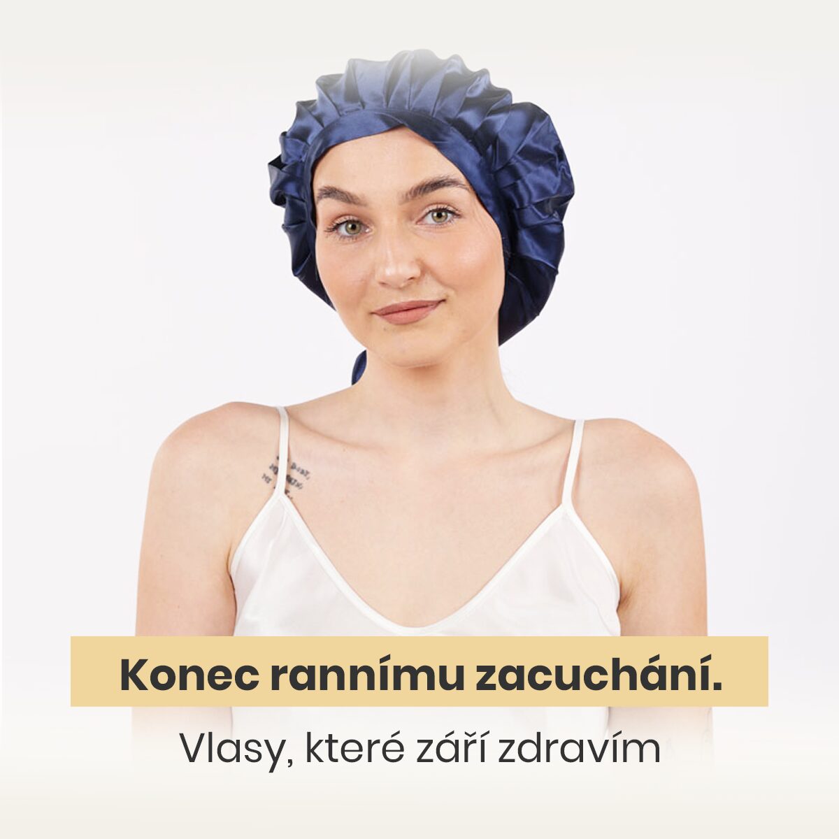 | Materiál | Hedvábný turban SIMIsilk | Bavlněná čepice | Umělý satén (polyester) |
