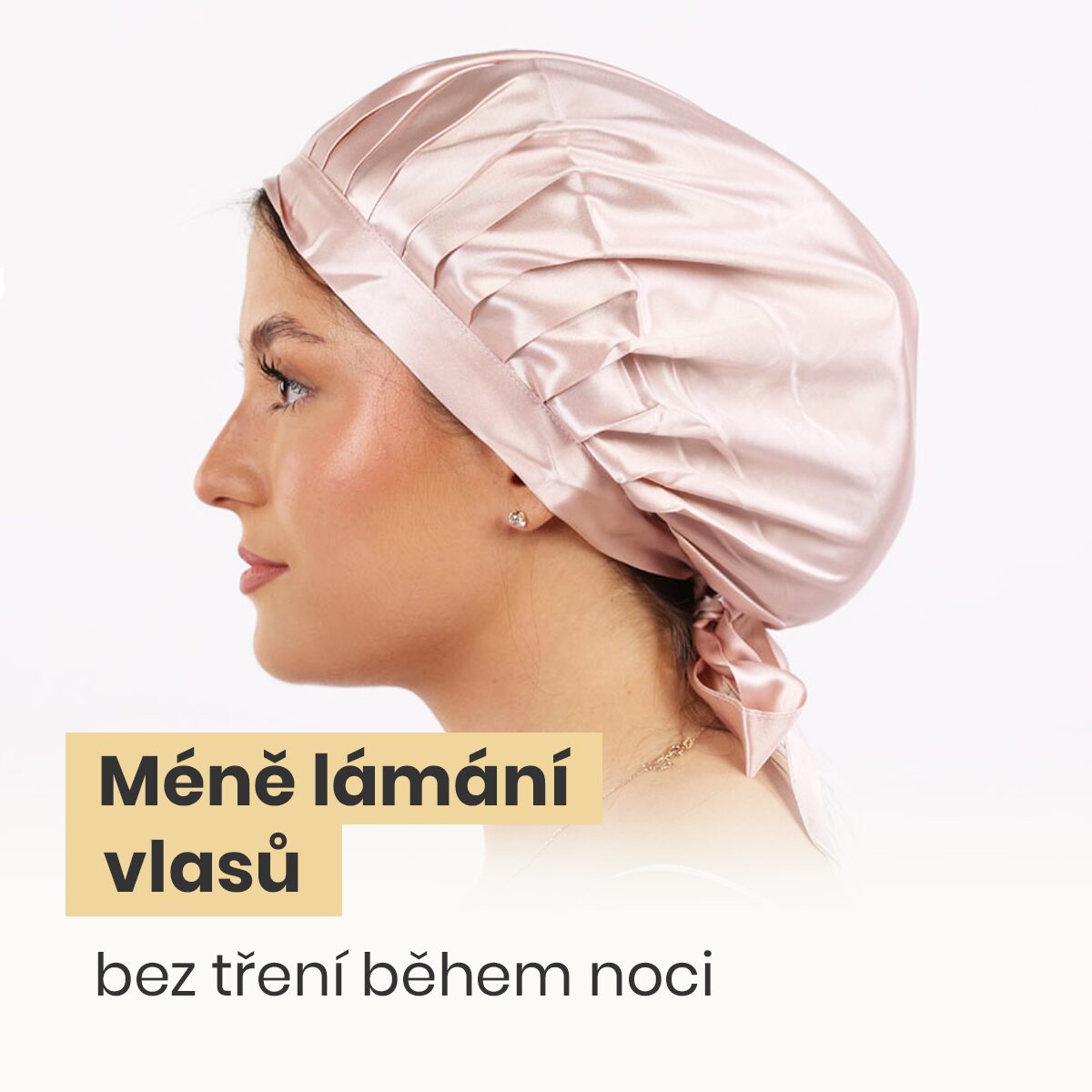| Materiál | Hedvábný turban SIMIsilk | Bavlněná čepice | Umělý satén (polyester) |